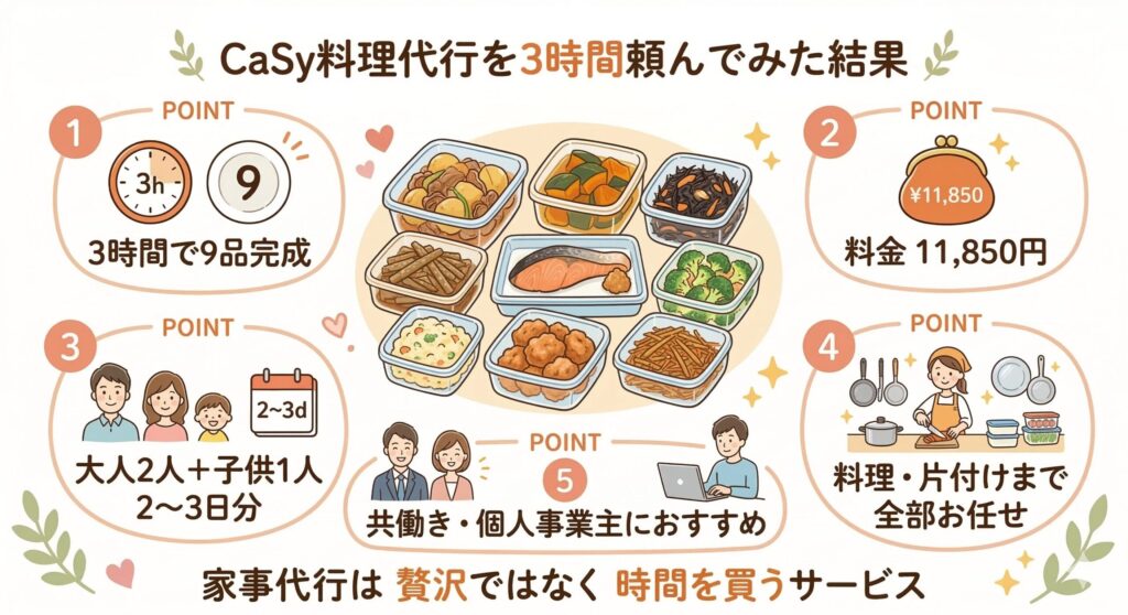 まとめ:CaSy料理代行は「忙しい人の時間を増やすサービス」だった